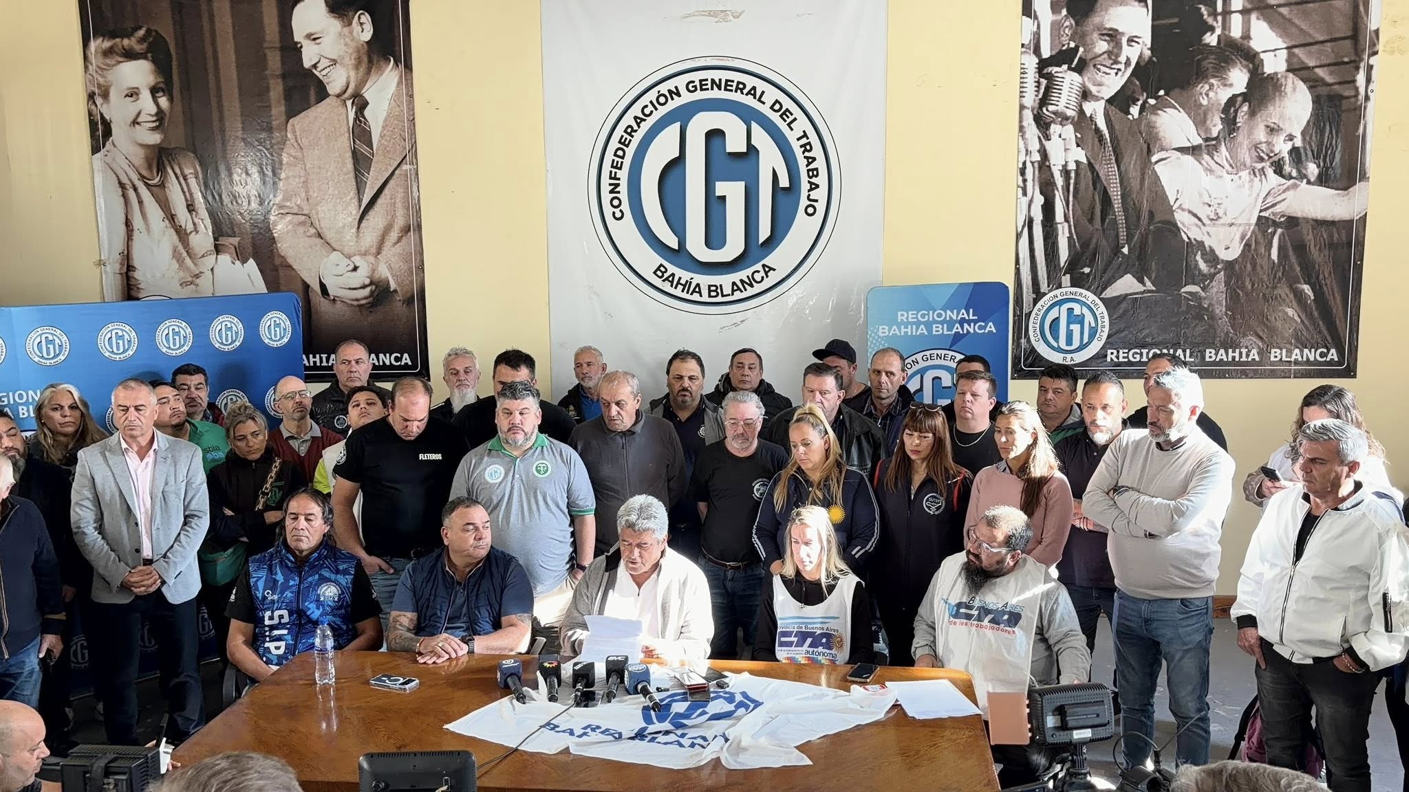 Hoy, en la rueda de prensa de la CGT Regional Bahía Blanca, nuestro Secretario General y secretario general de la CGT Carlos Boer fue contundente: la prisión preventiva es una medida desproporcionada y un castigo ejemplificador. No queremos que se use la justicia para disciplinar al movimiento obrero mientras los empresarios violan las leyes laborales sin consecuencias.